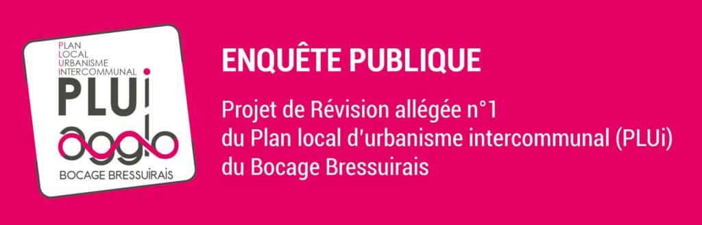 Monsieur le Président de la Communauté d’agglomération du Bocage Bressuirais (Agglo2B) a ordonné l’ouverture d’une enquête publique pour une durée de 31 jours consécutifs, du lundi 15 septembre 2025 à 9h00, au mercredi 15 octobre 2025 à 17h00 inclus, concernant le projet de révision allégée n°1 du Plan Local d’Urbanisme intercommunal (PLUi) du Bocage Bressuirais visant l’intégration des orientations du Schéma Directeur des Energies Renouvelables et des Récupérations.