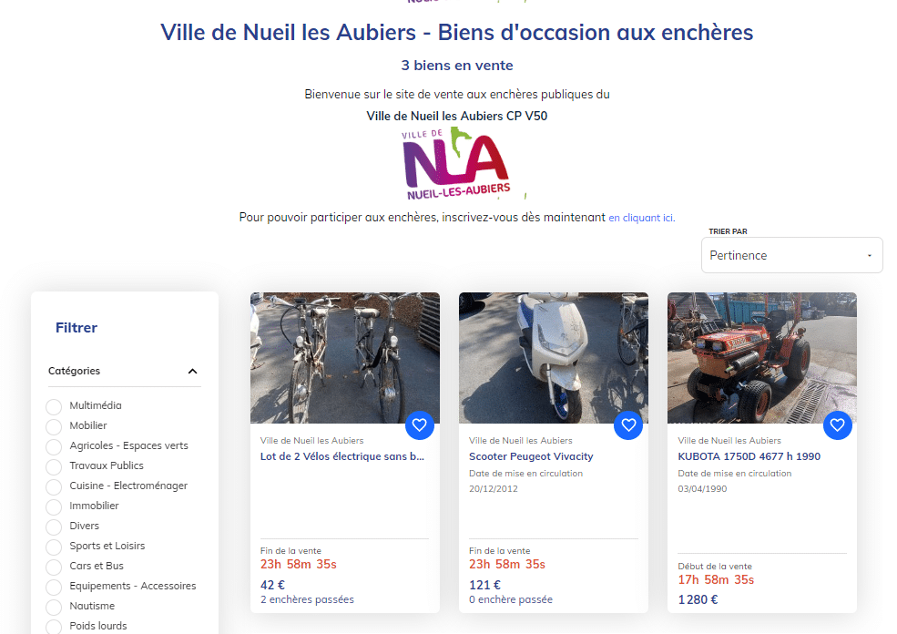 Retrouvez les ventes en cours sur : https://www.agorastore.fr/ventes-occasions/vendeur/nueil-les-aubiers